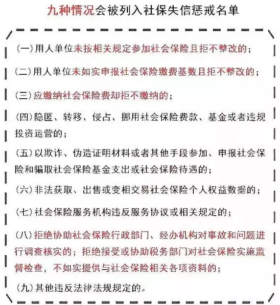 提醒:以下九种情形的将被列入社保严重失信、失范行为惩戒名单